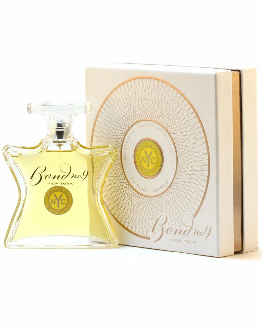 - Nouveau Bowery by Bond No 9 is a Citrus Aromatic fragrance for women. Nouveau Bowery was launched in 2003. The nose behind this fragrance is Robertet. The fragrance features lime, basil, lily, bergamot, thyme, mandarin orange, violet, woody notes, indonesian patchouli leaf, oakmoss and vetiver.
